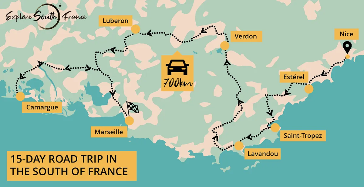 Of course, there are countless possible itineraries, but we hope this detailed schedule will help you prepare your 15-day road trip in south of France. You can adjust it to your taste, skip stops for a more relaxing holiday, or add more if youโre eager to discover everything, just like us !